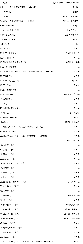 十四屆全國人大常委會立法規劃9月7日公布,包括三類立法項目。第一類項目為“條件比較成熟、任期內擬提請審議的法律草案”共79件,包括能源法、原子能法、可再生能源法(修改)等。第二類項目為“需要抓緊工作、條件成熟時提請審議的法律草案”共51件,包括電力法(修改)等。第三類項目為“立法條件尚不完全具備、需要繼續